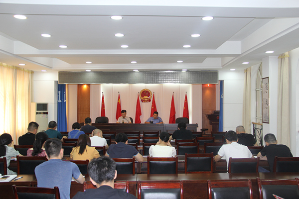 院党组书记、检察长韩立金首先传达了雷爱民检察长在2019年上半年工作观摩会中的讲话精神,随后,党组副书记、副检察长肖斌通报了市检察院对我院各部门上半年工作评议意见,对存在的问题和工作短板进行了剖析,并提出相关工作安排。