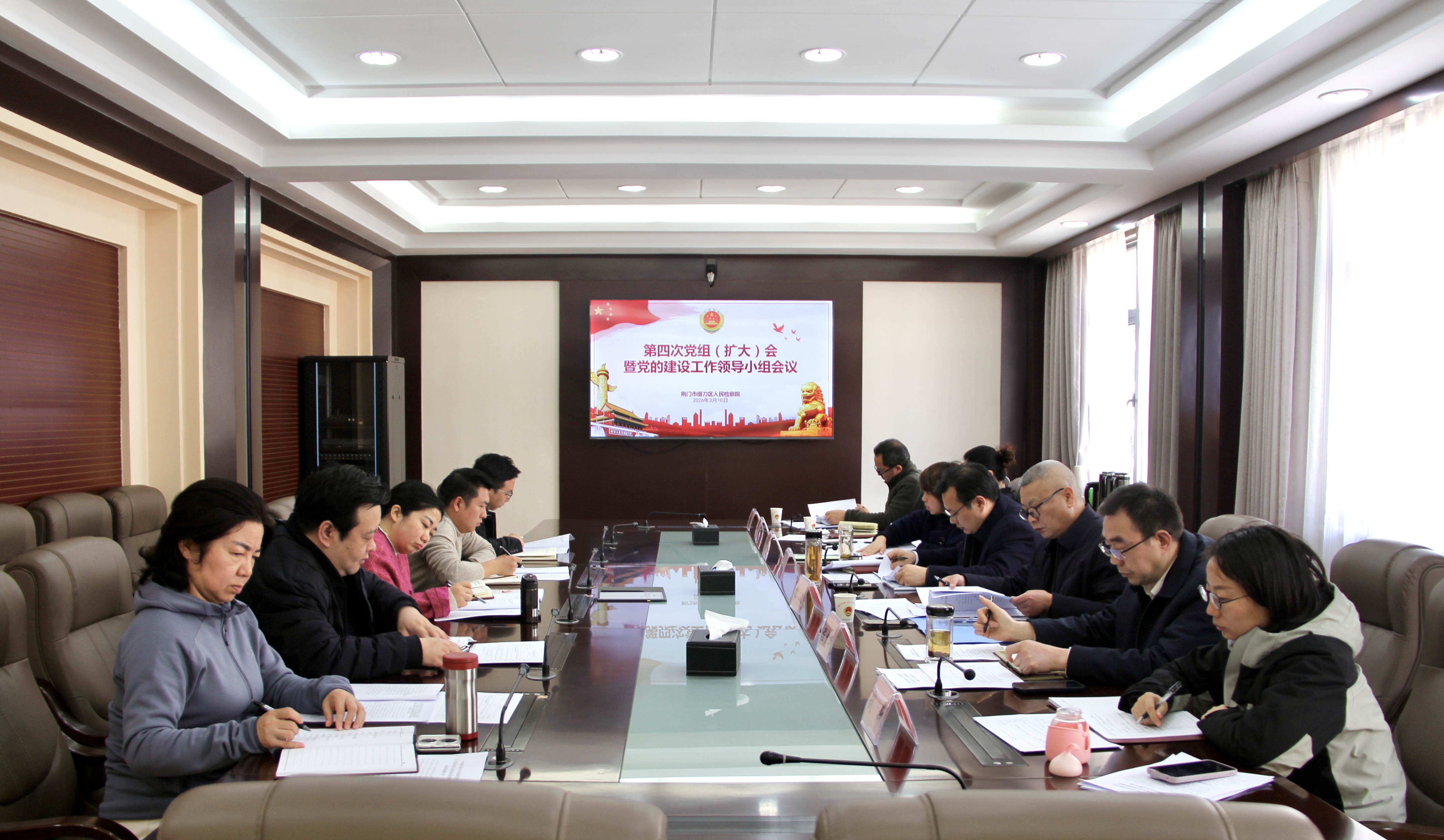 3月10日,掇刀区检察院召开党组(扩大)会暨党的建设工作领导小组会议,深入学习领会习近平总书记关于树立和践行正确政绩观的重要论述,全面贯彻落实中共中央办公厅《关于在全党开展树立和践行正确政绩观学习教育的通知》精神及省、市、区委和上级检察机关相关会议要求,研究部署本院学习教育工作。院党组书记、检察长刘杰主持会议并讲话,领导班子成员、检委会专职委员及各内设机构负责人参加会议。